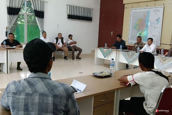 Saat mediasi di Kantor Balai TNWK, perwakilan masa diterima oleh Direktur Konservasi Kawasan Ditjen KSDAE KLHK; Sapto Aji Prabowo dan Kepala Balai TNWK M Zahdi didampingi Kepolisian dan TNI setempat.