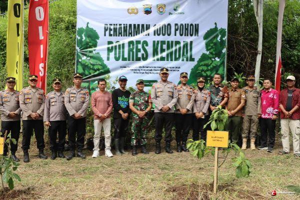 KENDAL – TERKININEWS.COM - Polres Kendal menggelar kegiatan penanaman 1.000 pohon di kawasan Kedung Pengilon, Desa Tunggulsari, Kecamatan Brangsong, Kabupaten Kendal, Selasa (13/1/2026). Kegiatan ini dipimpin langsung oleh Kapolres Kendal AKBP Hendry Susanto Sianipar dan diikuti unsur pemerintah daerah, TNI, tokoh masyarakat, serta warga setempat.