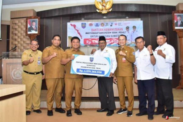 TEGAL - TERKININEWS.COM - Menunjukkan kepedulian kemanusiaan yang mendalam, Pemerintah Kabupaten Tegal telah berhasil menghimpun dana donasi sebesar Rp1.578.360.958,- untuk membantu saudara-saudara terdampak bencana alam di Aceh, Sumatera Utara, dan Sumatera Barat. Pengumpulan yang berlangsung sejak November hingga Desember 2025 ini diselesaikan tanpa menggelar acara seremonial yang boros biaya.