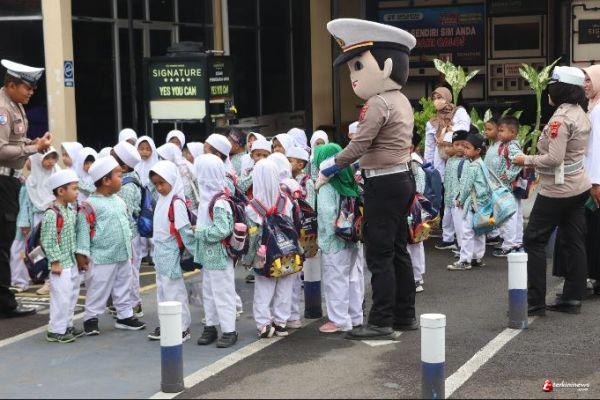 Kegiatan ini merupakan bagian dari program Polisi Sahabat Anak yang bertujuan untuk memperkenalkan pentingnya keselamatan berlalu lintas kepada generasi muda.