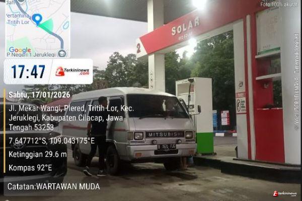 CILACAP - TERKININEWS.COM - Dugaan Penyalahgunaan BBM subsidi jenis solar masih marak di wilayah Jawa Tengah, Pasalnya awak media menemukan 1 unit Mobil Mitsubishi warna silver nopol B 1674 FJG yang sudah dimodifikasi sedang ngangsu BBM subsidi jenis Solar di SPBU 44.532.12 Tritih Lor, Kecamatan Jeruklegi, Kabupaten Cilacap, Jawa Tengah, pada Sabtu 17/1/2026.