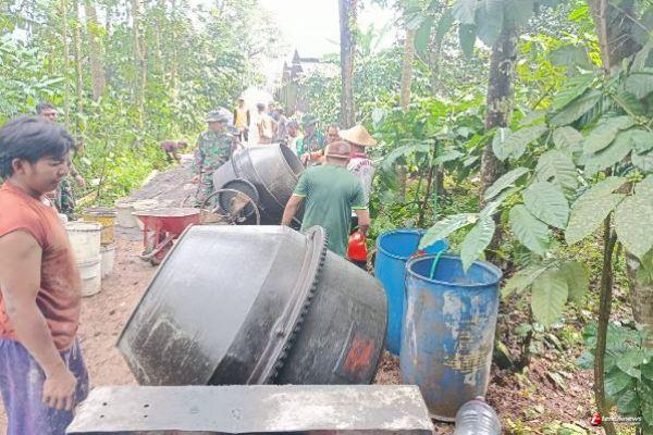 Bersyukur, Satgas Tak terkendala Air Untuk Pengecoran Jalan TMMD di Desa Gedong