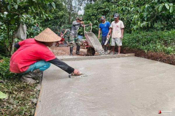 Gotong Royong , Satukan TNI dan Masyarakat Bangun Infrastruktur di Desa Gedong
