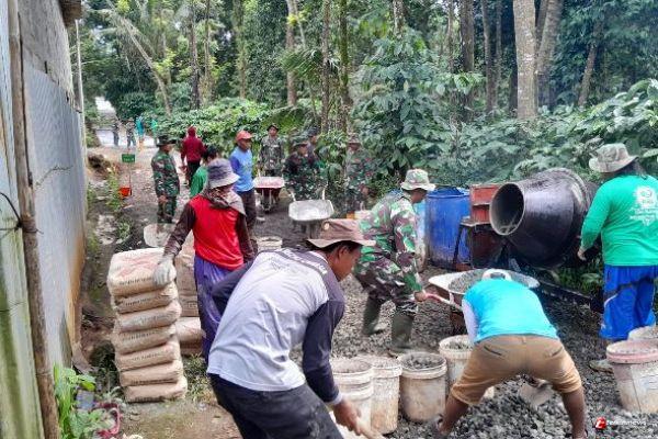 KENDAL – TERKININEWS.COM - Semangat gotong royong terpancar jelas di lokasi pelaksanaan TNI Manunggal Membangun Desa (TMMD) regular ke 127 di Desa Gedong, kecamatan Patean. Sejumlah personel TNI bersama masyarakat setempat terlihat sangat antusias bekerja sama dalam pengerjaan infrastruktur fisik berupa pengecoran jalan 1000 meter yang menghubungkan dusun Tempuran dengan dusun Kandang di desa tersebut, Rabu (10/2).
