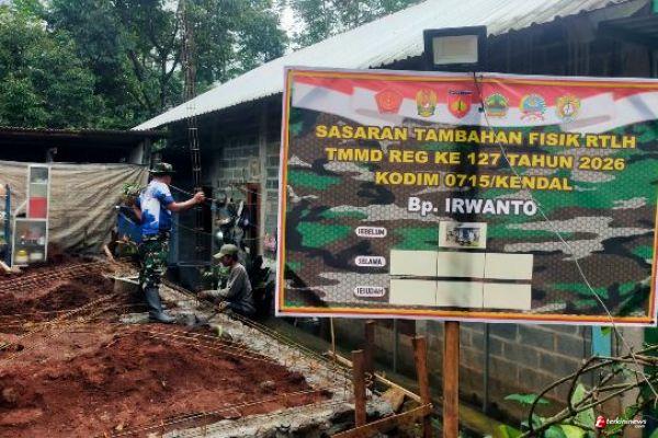 KENDAL – TERKININEWS.COM - Program Tentara Manunggal Membangun Desa (TMMD) Reguler ke-127 Tahun 2026 Kodim 0715/Kendal terus menunjukkan progres signifikan. Salah satu sasaran fisik tambahan yang menjadi prioritas adalah renovasi Rumah Tidak Layak Huni (RTLH) milik Irwanto di Dukuh Tempuran, Desa Gedong, Kecamatan Patean, Kabupaten Kendal.