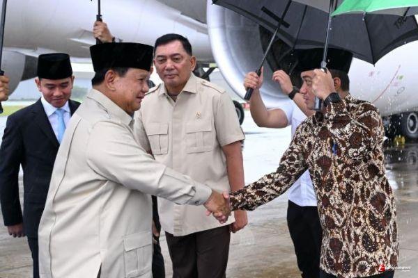 Ketibaan Presiden di Pangkalan TNI AU Halim Perdanakusuma disambut oleh Wakil Presiden Gibran Rakabuming, Menteri Pertahanan Sjafrie Sjamsoeddin, Menteri Sekretaris Negara Prasetyo Hadi, Panglima TNI Jenderal Agus Subiyanto, dan Kapolri Jenderal Listyo Sigit Prabowo.